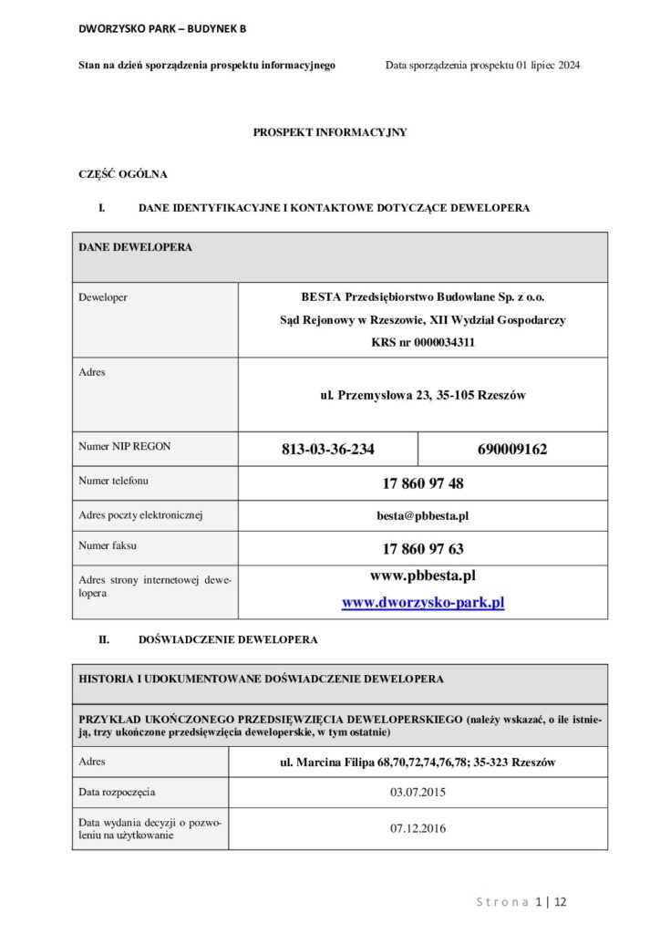 Prospekt informacyjny budynek B